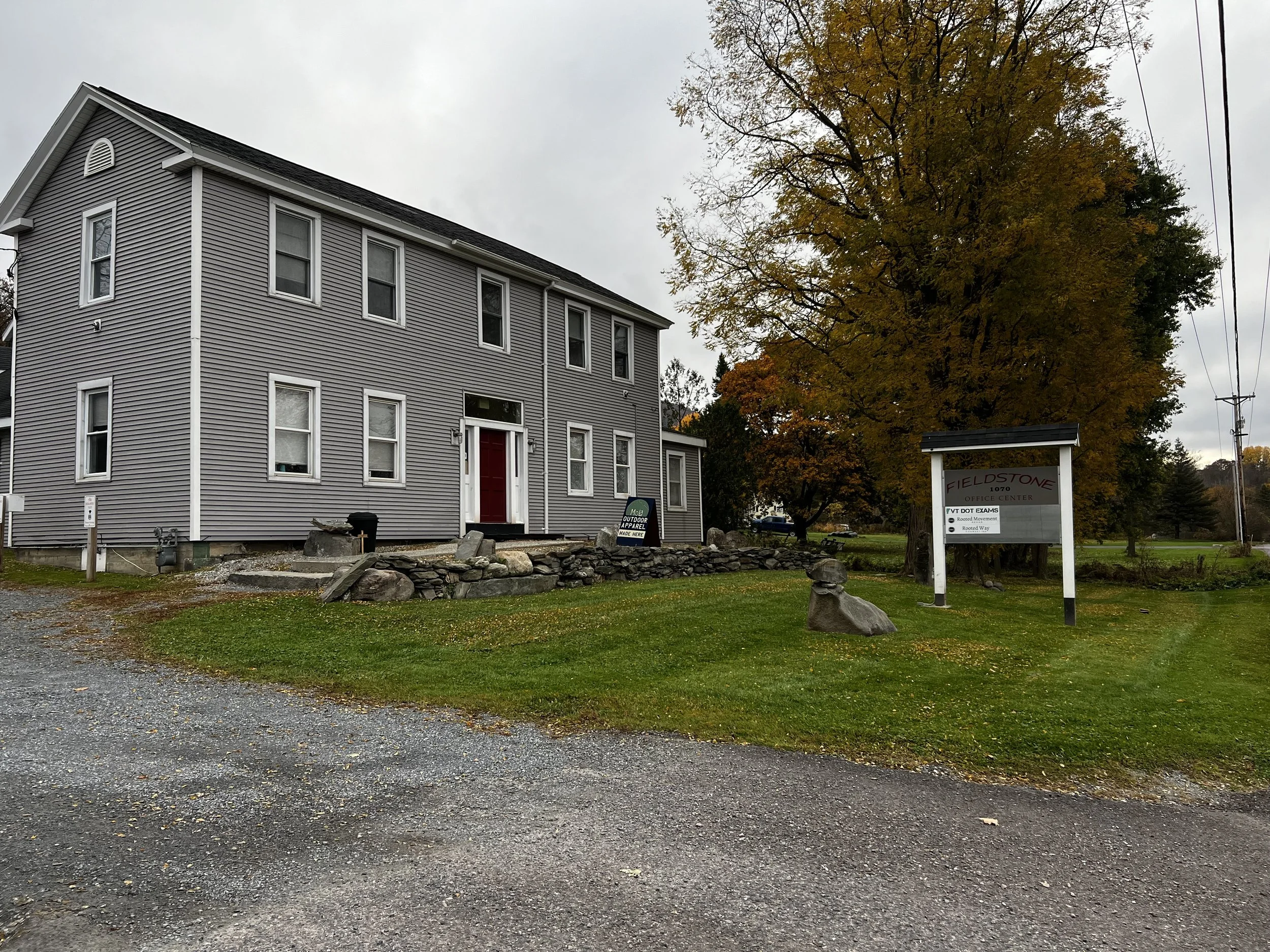 Our office is conveniently located less than a mile from Exit 11 off of I-89. Please be advised that this office is not wheelchair accessible and requires you to climb a flight of stairs. Parking is provided and there is a small waiting area inside the building outside my office.